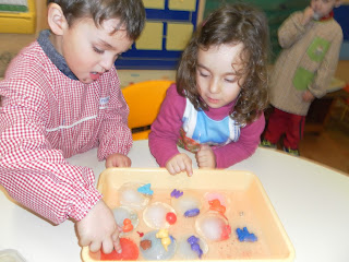 no dia do sr Eureka Descoberta,fomos fazer experiências com água (líquida) e (sólida) depois de estar um dia no congelador. Esta simples atividade permitiu "uma chuva" de sensações, observações a experimentações.
