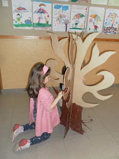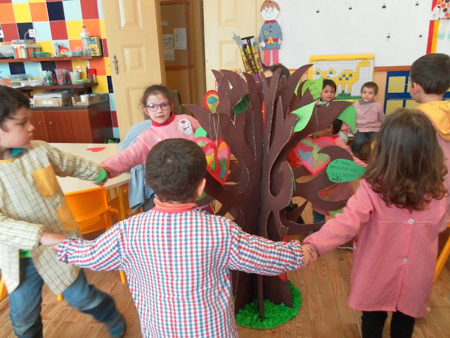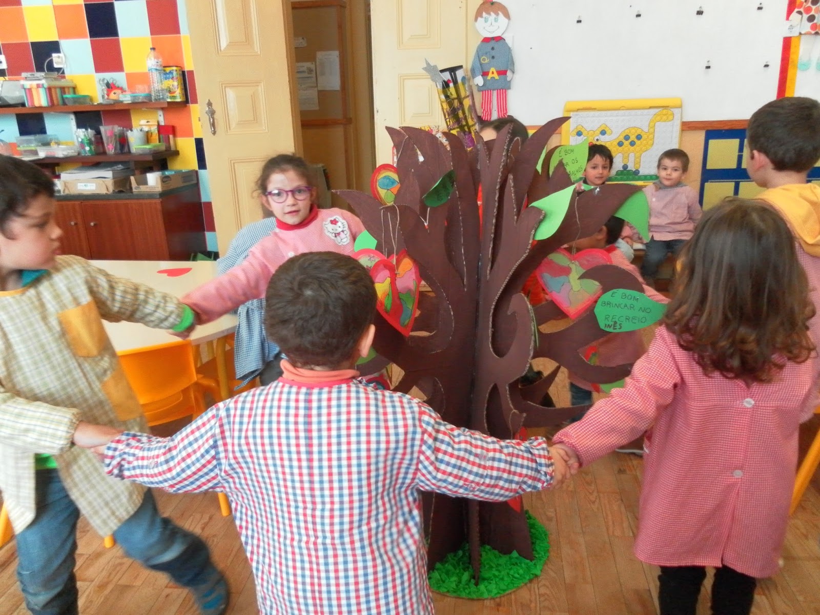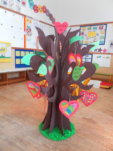 para concluir os nossos trabalhos sobre os sentimentos, construímos uma árvore para colocar os nossos corações pintados e colocámos nas folhas o que nos faz feliz na escola