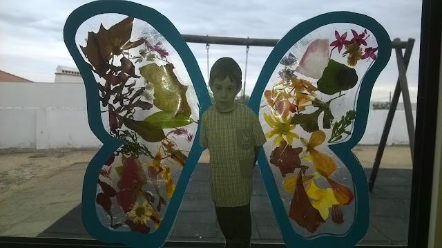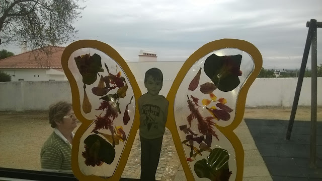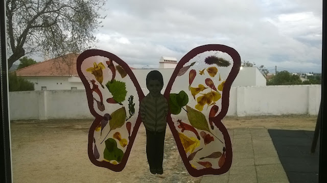 esvoaça pela janela da nossa sala. com as folhas do outono, aproveitámos para decorar as asas das borboletas. gostámos muito deste trabalho.nestas fotos, parece mesmo a sério que nos vestimos de borboletas... que divertido!