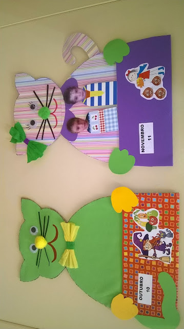 Em simultâneo, falámos sobre o patrono da nossa escola,José Valentim Fialho de Almeida donde adotámos a mascote: Gato Valentim- fizemos um novo painel para os aniversários, explorámos os nossos nomes e com as folhas do outono, fizemos um trabalho sobre a nossa identidade
